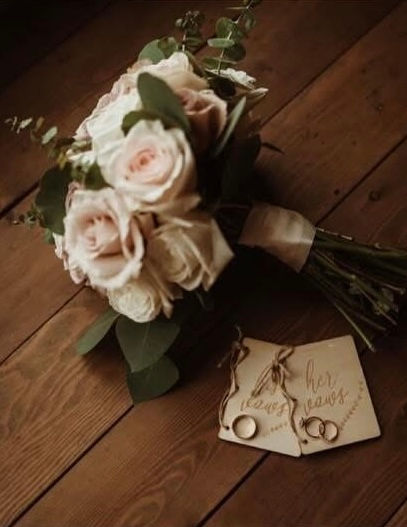 Carlee wanted something subtle to complement her day. The blue hydrangea and white lily compliment her dress in such a subtle way.